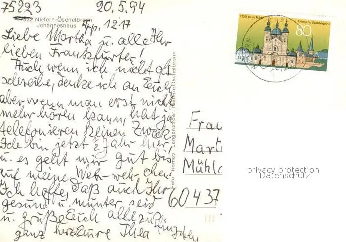 Niefern-oeschelbronn Johanneshas Niefern-oeschelbronn postalisch gelaufen 1994 Erhaltung siehe scans [KathaD81] Kathoren