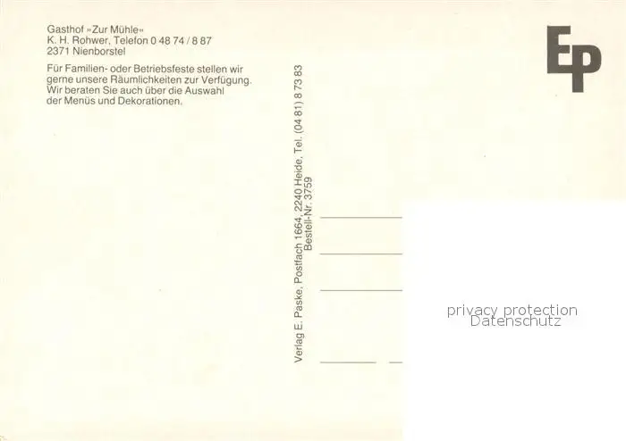 Nienborstel Gasthof zur Muehle Festsaal Garten Nienborstel postalisch nicht gelaufen nach 1965 Erhaltung siehe scans [FriedD77] Frierer
