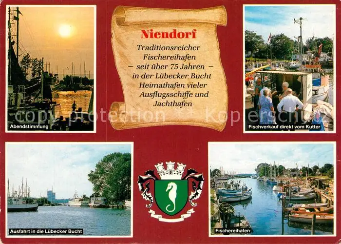 AK / Ansichtskarte Niendorf_Ostseebad Abendstimmung Fischverkauf direkt vom Kutter Ausfahrt in die Luebecker Bucht Fischereihafen Niendorf_Ostseebad