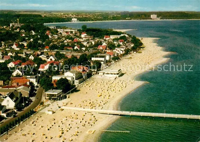Niendorf_Ostseebad Kategorie Alte Ansichtskarten Postkarten bx50146 Niendorf_Ostseebad Strand Seebruecke Fliegeraufnahme Niendorf_Ostseebad postalisch gelaufen nach 1965 Erhaltung siehe scans [FriedD77]
