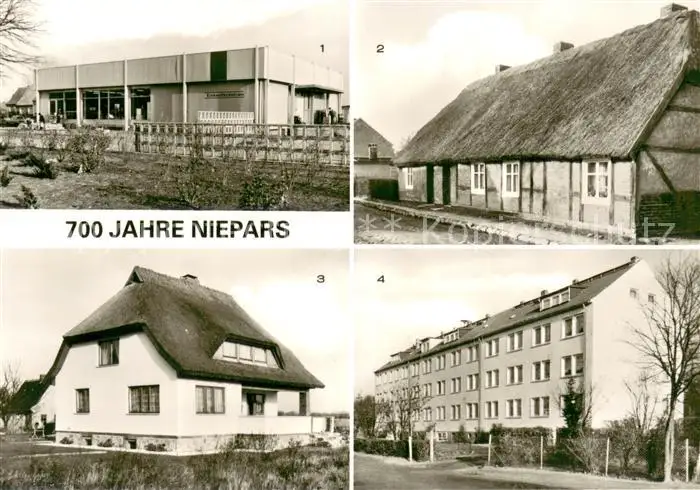 AK / Ansichtskarte Niepars 700 Jahre Jubilaeum Laendliches Einkaufszentrum Strassenpartien Schwarzer Weg Wohnblock Niepars
