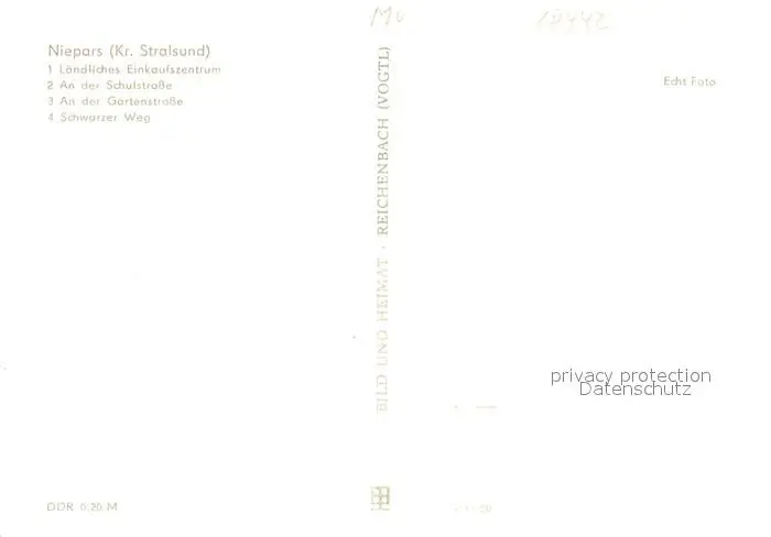 Niepars 700 Jahre Jubilaeum Laendliches Einkaufszentrum Strassenpartien Schwarzer Weg Wohnblock Niepars postalisch nicht gelaufen 1982 Erhaltung siehe scans [FriedD77] Frierer
