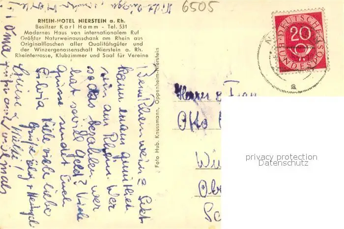 Nierstein_Rhein Rhein-Hotel Aussenansicht Nierstein_Rhein postalisch gelaufen 1921-1965 Erhaltung siehe scans [LiesaD40] LiesID40