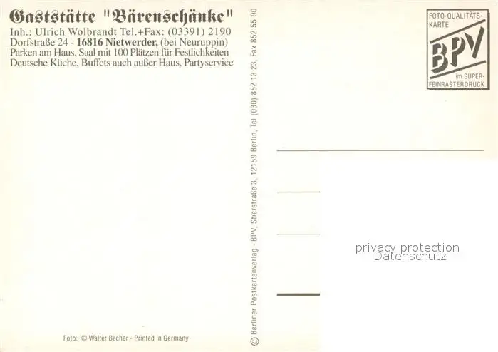 Nietwerder Restaurant B?rensch?nke Nietwerder postalisch nicht gelaufen nach 1965 Erhaltung siehe scans [LiesaD40] LiesID40