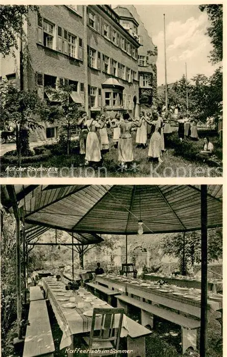 Noerdlingen Haushaltungs und Handarbeitsschule Ev Maedchenpensionat Auf der Spielwiese Kaffeetisch im Sommer Noerdlingen postalisch nicht gelaufen 1921-1965 Erhaltung siehe scans [FriedD77] Frierer