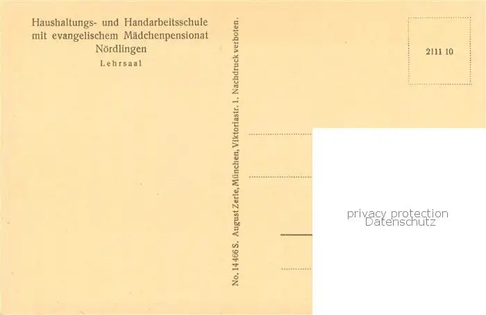 Noerdlingen Haushaltungs und Handarbeitsschule Ev Maedchenpensionat Lehrsaal Noerdlingen postalisch nicht gelaufen 1921-1965 Erhaltung siehe scans [FriedD77] Frierer