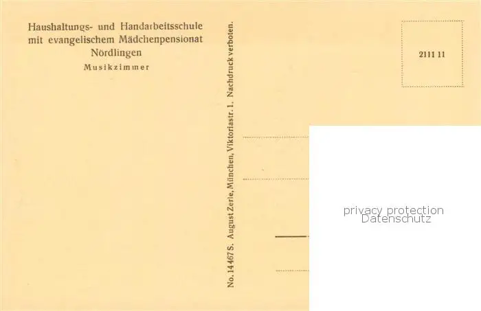 Noerdlingen Haushaltungs und Handarbeitsschule Ev Maedchenpensionat Musikzimmer Noerdlingen postalisch nicht gelaufen 1921-1965 Erhaltung siehe scans [FriedD77] Frierer