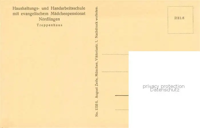 Noerdlingen Haushaltungs und Handarbeitsschule mit ev Maedchenpensionat Treppenhaus Noerdlingen postalisch nicht gelaufen 1921-1965 Erhaltung siehe scans [WerneD78] WernPID7