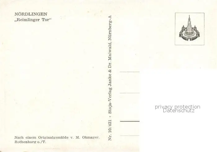 Noerdlingen Reimlinger Tor Kuenstlerkarte Noerdlingen postalisch nicht gelaufen 1921-1965 Erhaltung siehe scans [WerneD78] WernPID7