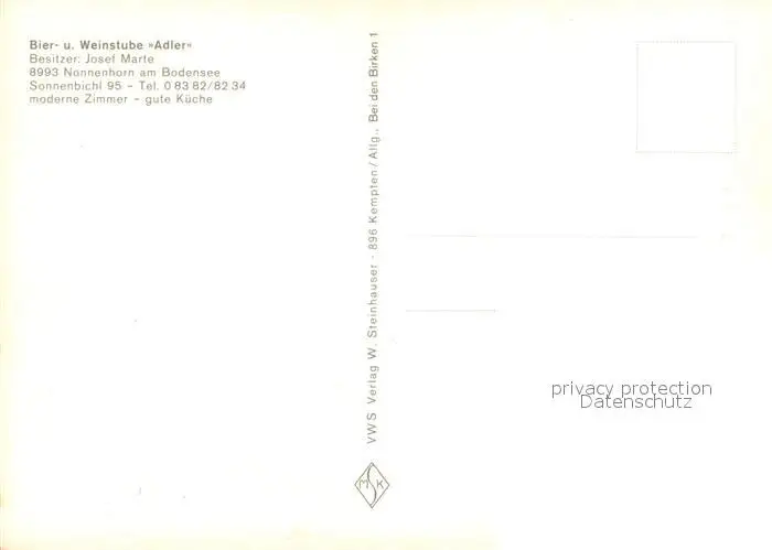 Nonnenhorn_Bodensee Bier und Weinstube Adler Nonnenhorn Bodensee postalisch nicht gelaufen nach 1965 Erhaltung siehe scans [WerneD78] WernPID7