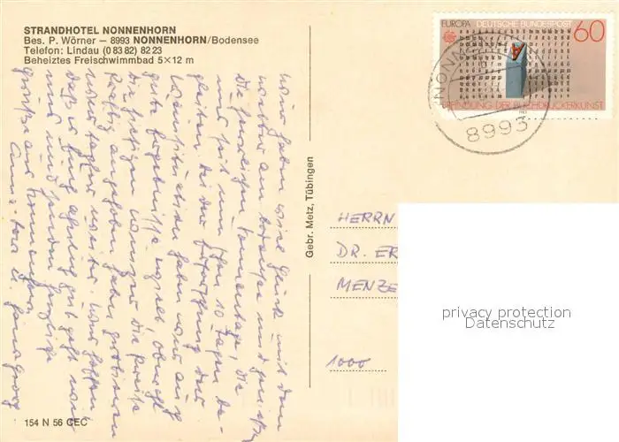 Nonnenhorn_Bodensee Strandhotel Nonnenhorn Nonnenhorn Bodensee postalisch gelaufen nach 1965 Erhaltung siehe scans [WerneD78] WernPID7
