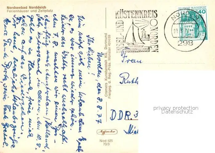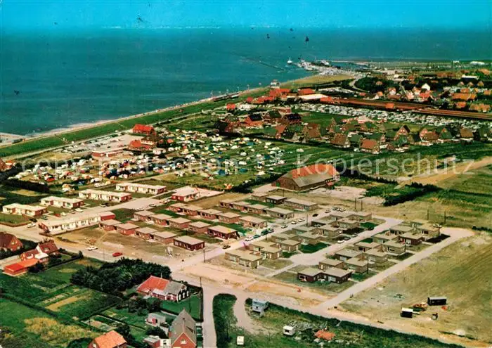 Norddeich Dithmarschen Kategorie Alte Ansichtskarten Postkarten bx62776 Norddeich_Dithmarschen Fliegeraufnahme Ferienhaeuser Zeltplatz Norddeich Dithmarschen postalisch gelaufen 1977 Erhaltung siehe scans [KathaD81]