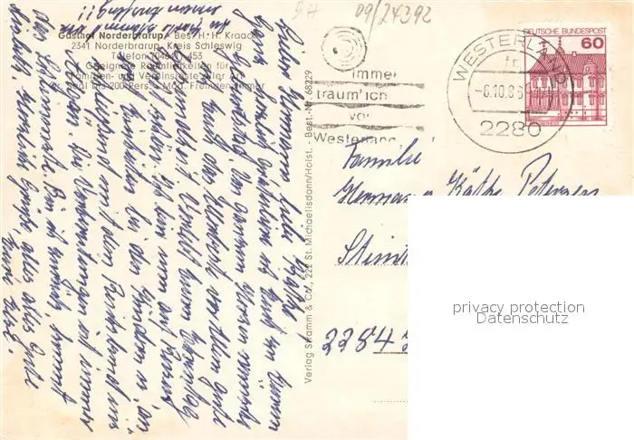 Norderbrarup Kategorie Alte Ansichtskarten Postkarten bx93229 Norderbrarup Gasthof Norderbrarup Veranstaltungs und Gastraum Norderbrarup postalisch gelaufen 1986 Erhaltung siehe scans [WerneD78]