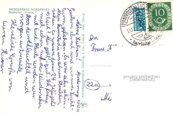 Norderney_Nordseebad Kategorie Alte Ansichtskarten Postkarten bx57957 Norderney_Nordseebad Dampfer Frisia I Norderney_Nordseebad postalisch gelaufen 1953 Erhaltung siehe scans [NatalD47]