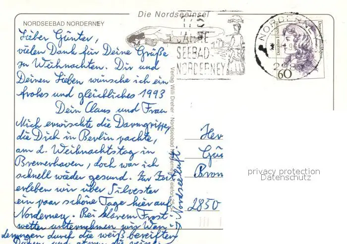Norderney_Nordseebad Duenenlandschaft Brandung Strand Sonnenuntergang Norderney_Nordseebad postalisch gelaufen 1993 Erhaltung siehe scans [FriedD77] Frierer