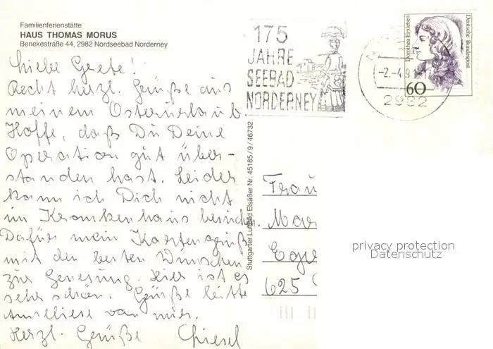 Norderney_Nordseebad Kategorie Alte Ansichtskarten Postkarten bx58218 Norderney_Nordseebad Fliegeraufnahme Haus Thomas Morus Norderney_Nordseebad postalisch gelaufen 1991 Erhaltung siehe scans [NatalD47]