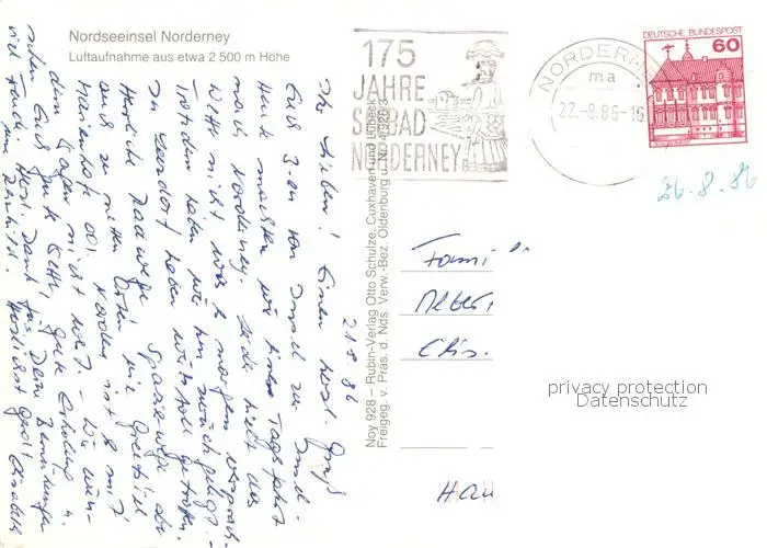 Norderney_Nordseebad Fliegeraufnahme Norderney_Nordseebad postalisch gelaufen 1986 Erhaltung siehe scans [FriedD77] Frierer
