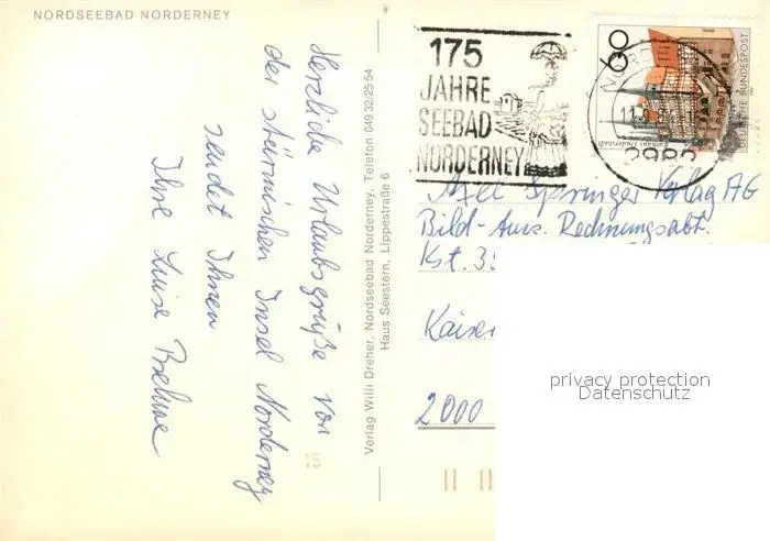 Norderney_Nordseebad Fliegeraufnahme Sturmflut Faehrschiffe Strandpartie Norderney_Nordseebad postalisch gelaufen 1984 Erhaltung siehe scans [WerneD78] WernPID7