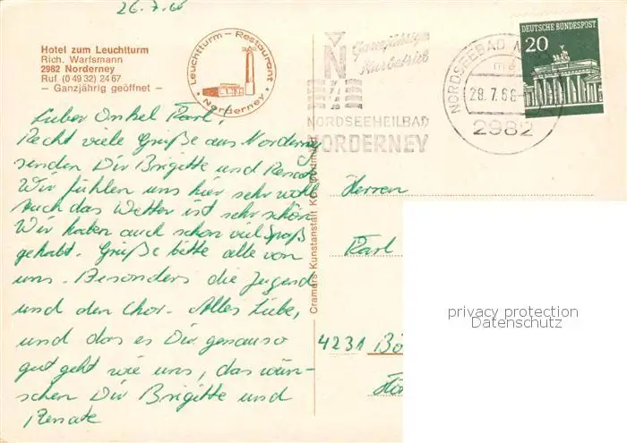 Norderney_Nordseebad Hotel zum Leuchtturm Gastraeume Norderney_Nordseebad postalisch gelaufen 1966 Erhaltung siehe scans [FriedD77] Frierer