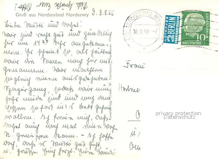 Norderney_Nordseebad Windmuehle Teich Norderney_Nordseebad postalisch gelaufen 1955 Erhaltung siehe scans [WerneD78] WernPID7