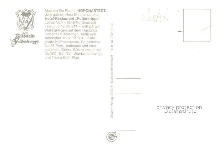 Nordhastedt Hotel Restaurant Futterkrippe Gastraeume Gartenterrasse Nordhastedt postalisch nicht gelaufen nach 1965 Erhaltung siehe scans [WerneD78] WernPID7
