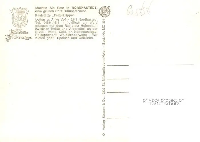 Nordhastedt Raststaette Futterkrippe Gastraeume Freiterrasse Nordhastedt postalisch nicht gelaufen nach 1965 Erhaltung siehe scans [WerneD78] WernPID7