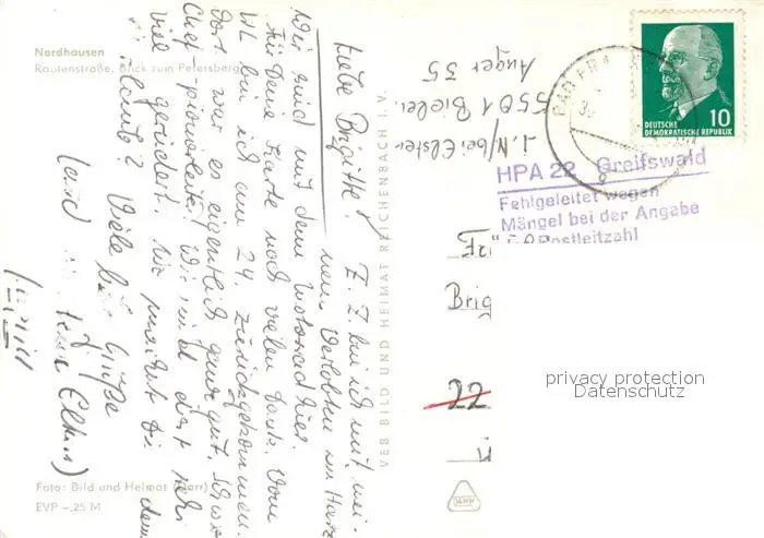 Nordhausen_Thueringen Rautenstrasse mit Petersberg Nordhausen Thueringen postalisch gelaufen nach 1965 Erhaltung siehe scans [WerneD78] WernPID7