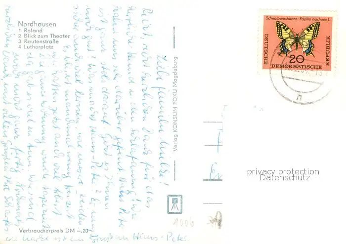 Nordhausen__Harz Roland Theater Rautenstrasse Lutherplatz postalisch gelaufen nach 1965 Erhaltung siehe scans [FriedD77] Frierer