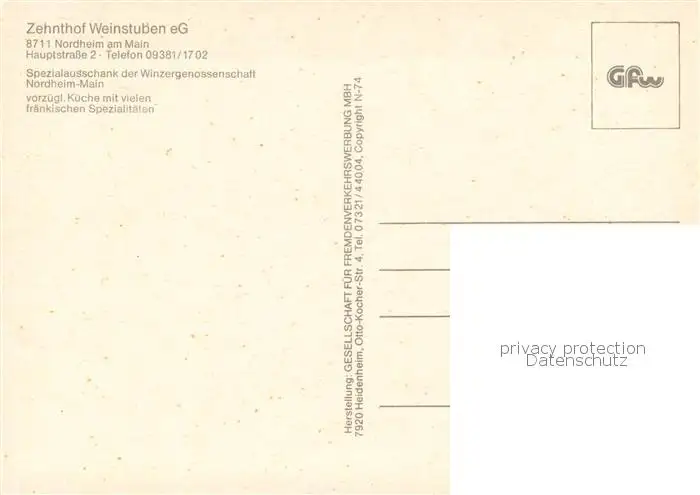 Nordheim_Main Zehnthof Weinstuben eG Innenansicht Stube Nordheim Main postalisch nicht gelaufen nach 1965 Erhaltung siehe scans [LiesaD40] LiesID40