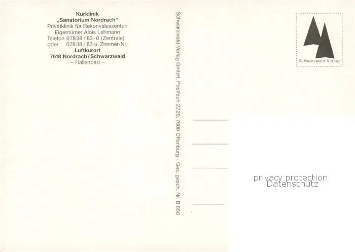 Nordrach Kurklinik Sanatorium Nordrach Nordrach postalisch nicht gelaufen nach 1965 Erhaltung siehe scans [WerneD78] WernPID7
