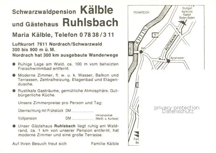 Nordrach Pension Kaelble Gasthaus Ruhlsbach Nordrach postalisch nicht gelaufen nach 1965 Werbekarte (keine Postkarte) Erhaltung siehe scans [LiesaD40] Werbekarte (keine Postkarte) LiesID40