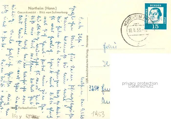 Northeim Panorama Blick vom Sulimerberg Northeim postalisch gelaufen 1963 Erhaltung siehe scans [FriedD77] Frierer