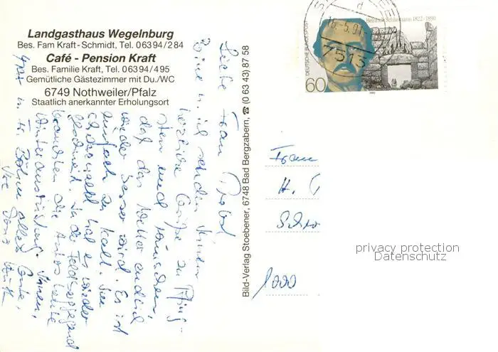 Nothweiler Cafe Pension Kraft Terrasse Gaststube Panorama Nothweiler postalisch gelaufen 1991 Erhaltung siehe scans [WerneD78] WernPID7