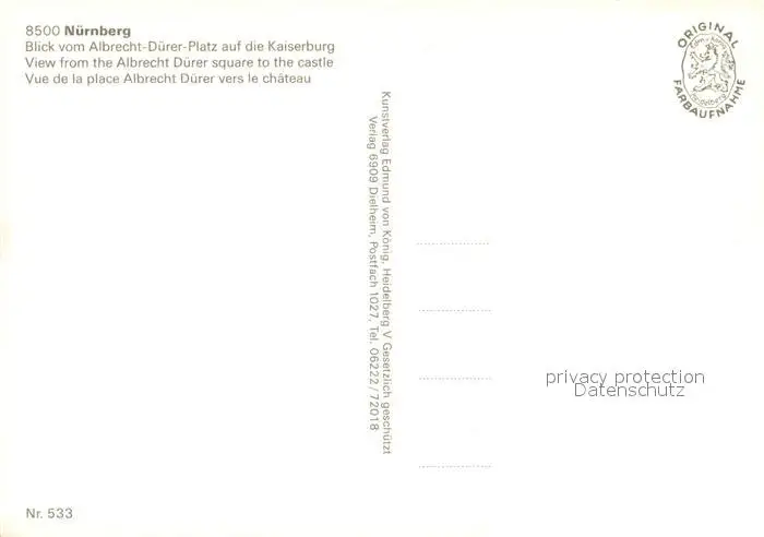 Nuernberg Albrecht Duerer Platz Kaiserburg Turm Nuernberg postalisch nicht gelaufen nach 1965 Erhaltung siehe scans [FriedD77] Frierer