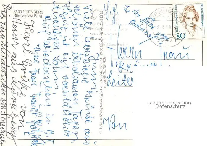 Nuernberg Blicka uf die Burg Fliegeraufnahme Nuernberg postalisch gelaufen 1986 Erhaltung siehe scans [FriedD77] Frierer