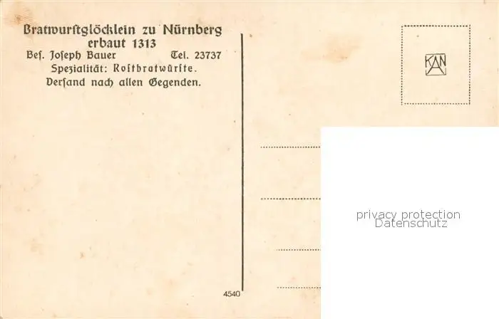 Nuernberg Bratwurstgloecklein zu Nuernberg Historische Gaststaette Nuernberg postalisch nicht gelaufen 1921-1965 Erhaltung siehe scans [FriedD77] Frierer