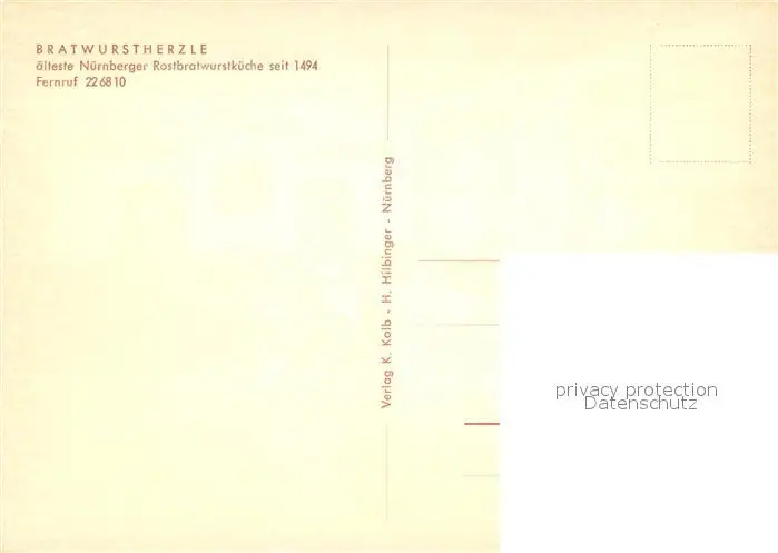 Nuernberg Bratwurstherzle Gaststube Nuernberg postalisch nicht gelaufen nach 1965 Erhaltung siehe scans [WerneD78] WernPID7