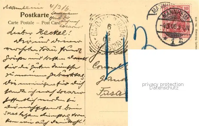Nuernberg Duerer Platz Denkmal Altstadt Nuernberg postalisch gelaufen 1906 Erhaltung siehe scans [FriedD77] Frierer