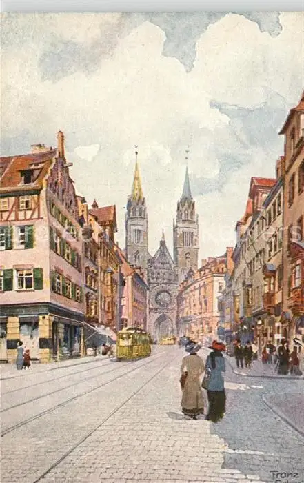Nuernberg Karolinenstrasse Lorenzkirche Franz Schmidt Kuenstlerkarte Nuernberg postalisch nicht gelaufen bis 1920 Erhaltung siehe scans [FriedD77] Frierer