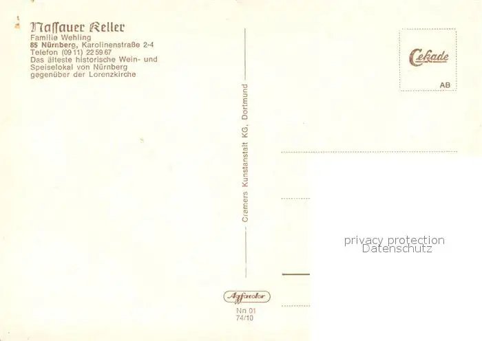 Nuernberg Nassauer Keller 900 Jahre Nuernberg postalisch nicht gelaufen nach 1965 Erhaltung siehe scans [LiesaD40] LiesID40