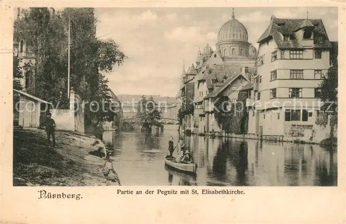 AK / Ansichtskarte Nuernberg Partie an der Pegnitz mit St Elisabethkirche Nuernberg