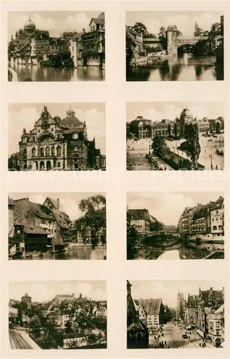 AK / Ansichtskarte Nuernberg Pegnitzpartie Stadttheater Alte Fischerhaeuser Hallertor Burg Hauptbahnhof Fleischbruecke Koenigstrasse Nuernberg
