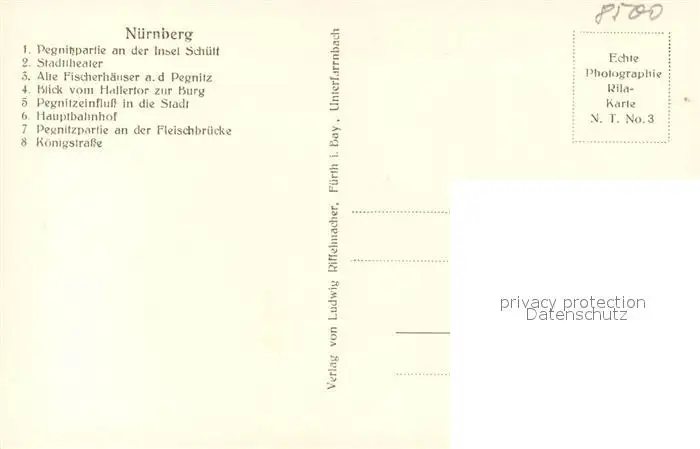 Nuernberg Pegnitzpartie Stadttheater Alte Fischerhaeuser Hallertor Burg Hauptbahnhof Fleischbruecke Koenigstrasse Nuernberg postalisch nicht gelaufen 1921-1965 Erhaltung siehe scans [WerneD78] WernPID7
