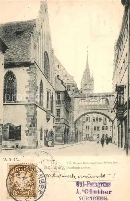 Nuernberg Rathausgasse Nuernberg postalisch gelaufen 1902 Erhaltung siehe scans [WerneD78] WernPID7