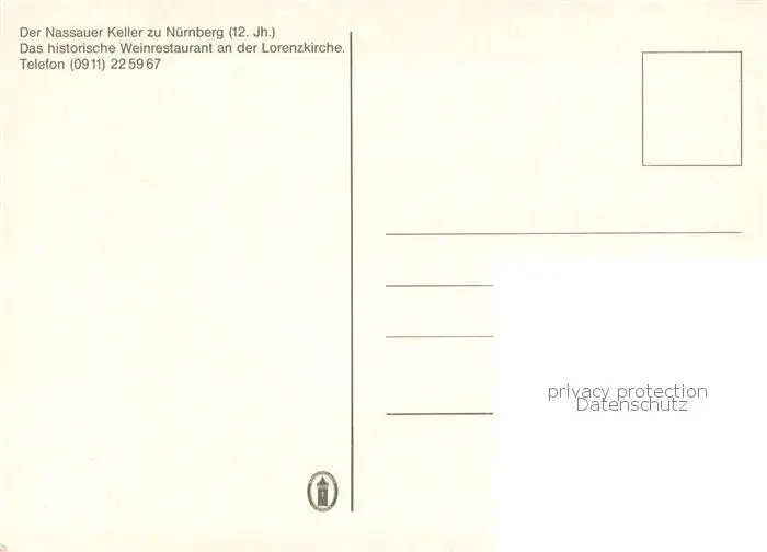 Nuernberg Restaurant Nassauer Keller zu Nuernberg 12. Jhdt. Historisches Weinrestaurant Altstadt Nuernberg postalisch nicht gelaufen nach 1965 Erhaltung siehe scans [FriedD77] Frierer