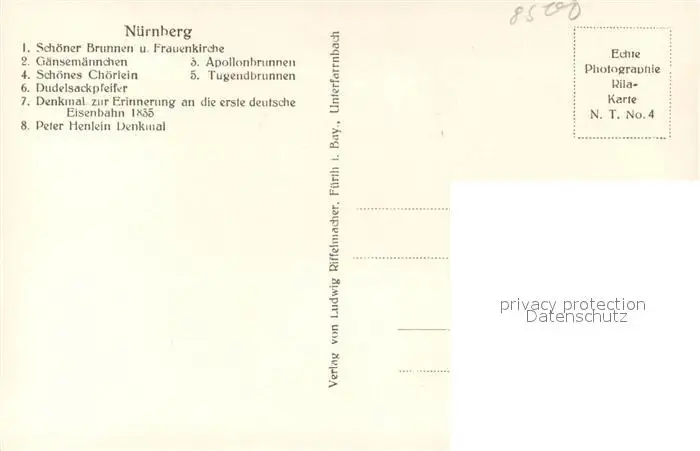 Nuernberg Schoener Brunne Gaensemaennchn Choerlein Dudelsackpfeifer Peter Henlein Denkmal Apollonbrunnen Tugendbrunnen Nuernberg postalisch nicht gelaufen 1921-1965 Erhaltung siehe scans [WerneD78] WernPID7