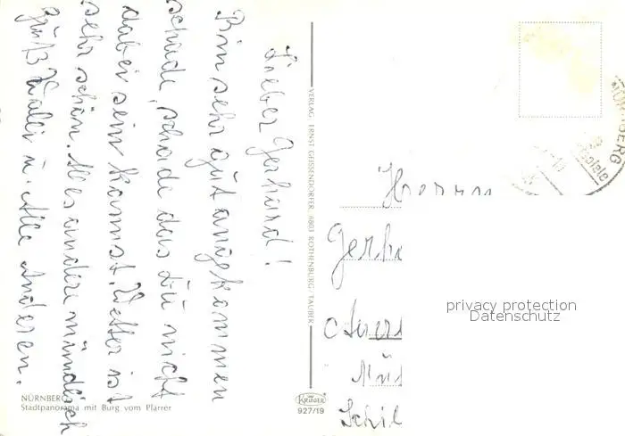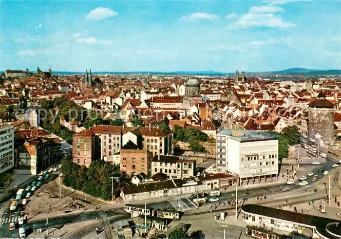 Nuernberg Kategorie Alte Ansichtskarten Postkarten bx94478 Nuernberg Stadtpanorama mit Burg vom Plaerrer Nuernberg postalisch gelaufen nach 1965 Erhaltung siehe scans [FriedD77]
