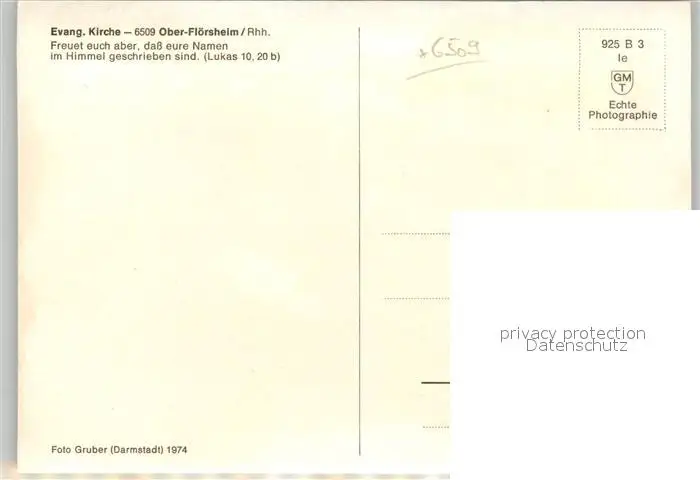 Ober-Floersheim Evangelische Kirche Psalm Ober-Floersheim postalisch nicht gelaufen 1974 Erhaltung siehe scans [FriedD77] Frierer