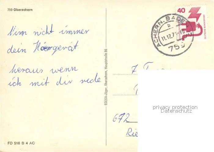Oberachern Kirchen Panorama Oberachern postalisch gelaufen 1976 Erhaltung siehe scans [WerneD78] WernPID7