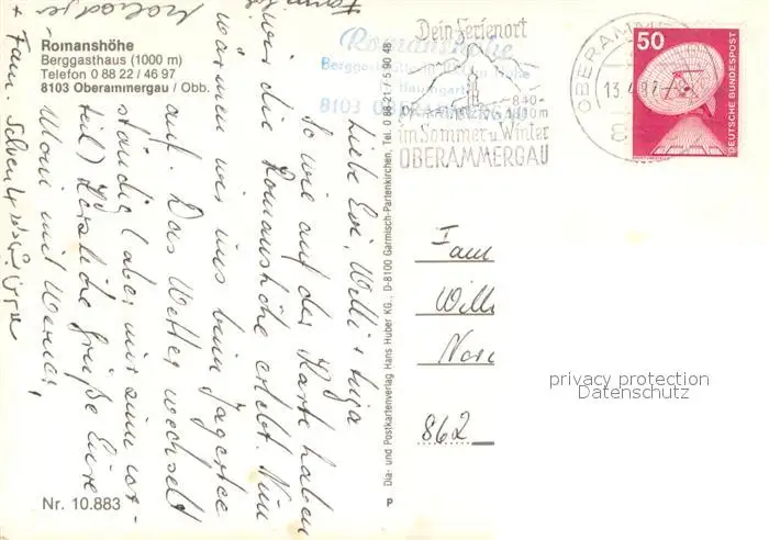 Oberammergau Berggasthaus Romanshoehe im Winter Oberammergau postalisch gelaufen 1982 Erhaltung siehe scans [FriedD77] Frierer